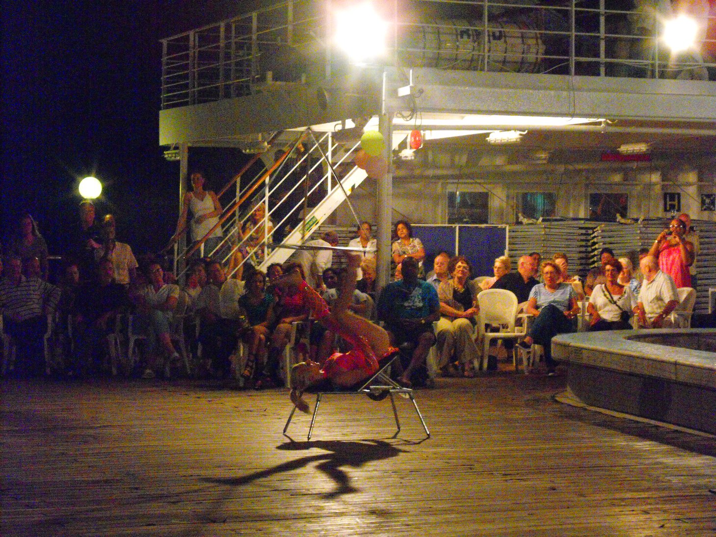 In the evening we were once again entertained with a tropical party – must everybody took part – lots of dancing on the pool deck and then a show put on by the entertainment crew – great fun was had by all – including having a few cocktails and a photographic opportunity with the Captain.